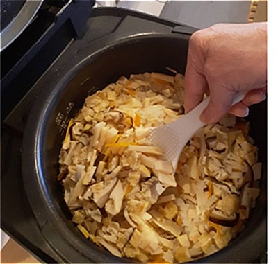夕食の御飯は、筍の炊き込みご飯にしてみました。