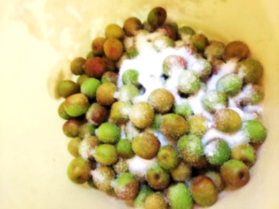 灰汁抜きをした梅を、
