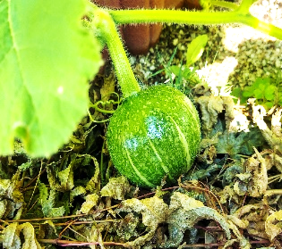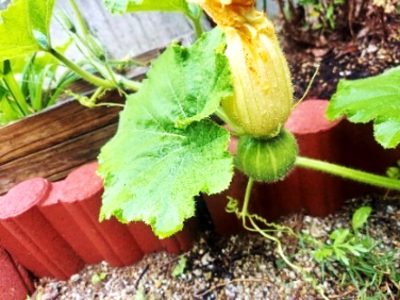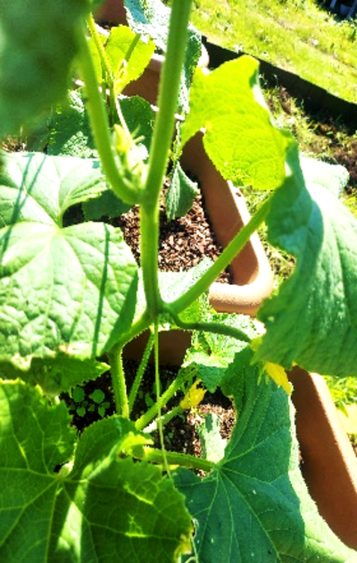 花が咲き、その先に小さな胡瓜が出来つつあります