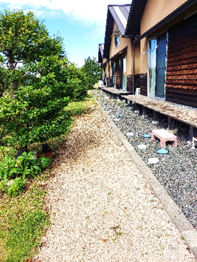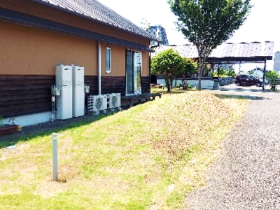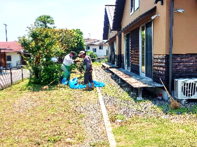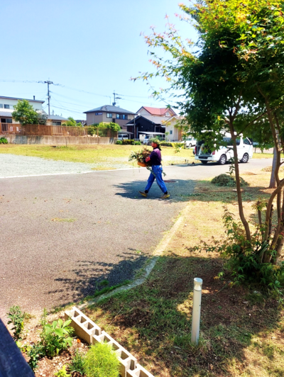 前庭だけではなく、住居前にも草が多く、草刈に入られます。