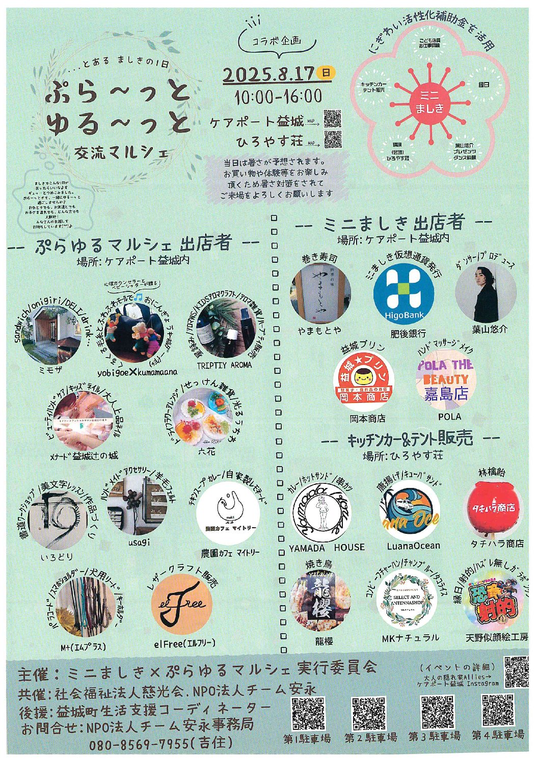 今回は8月17日(日)にひろやす荘とケアポート益城で行われるイベント「ミニましき」についてご紹介します💰