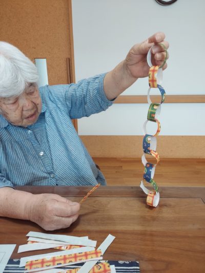 「できたぁ~」「この長さでよかろうかぁ」と長さを調整中!