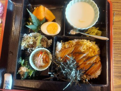 メニューは、穴子丼に錦糸卵と海苔をトッピング。