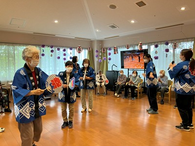 職員と踊りに覚えがある方が輪になって踊ります。