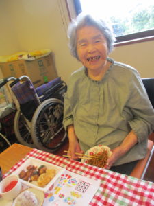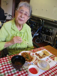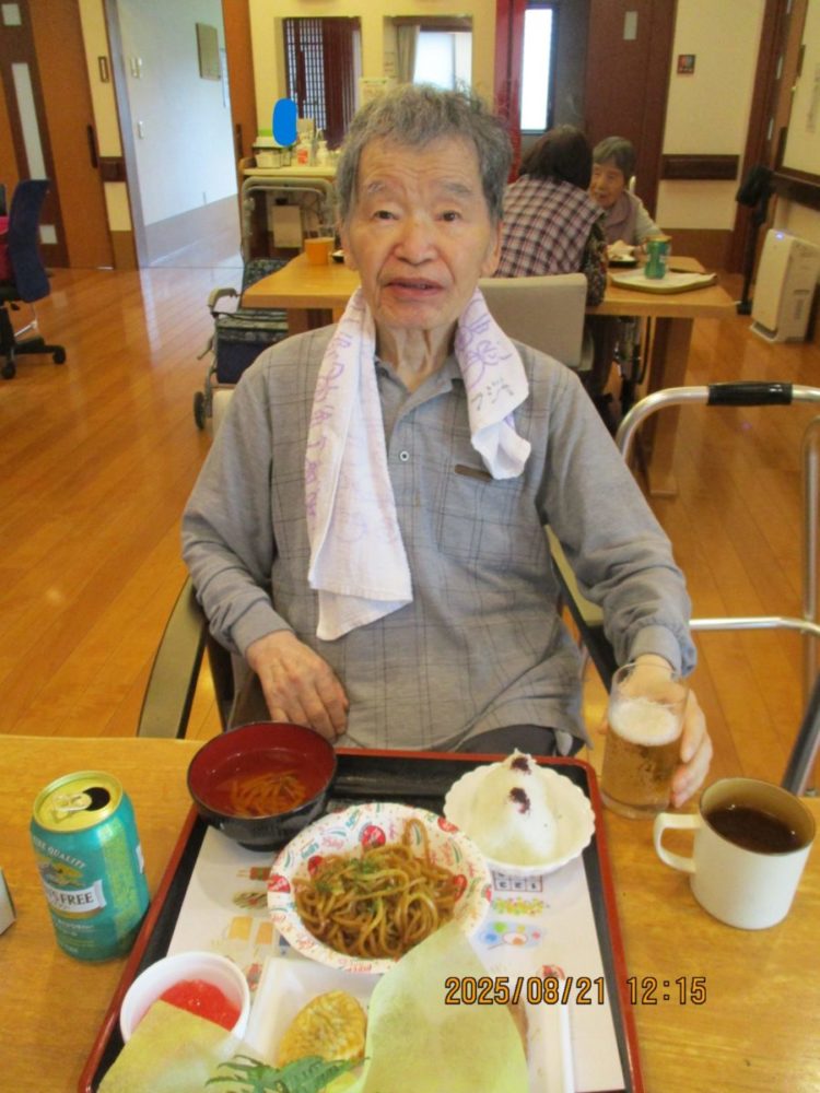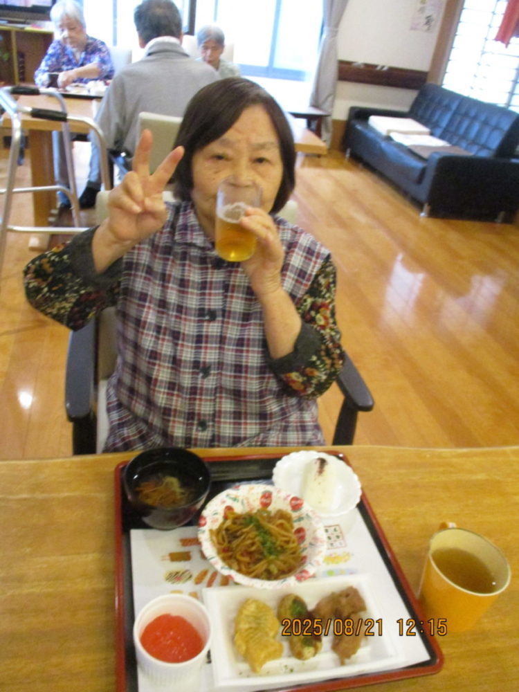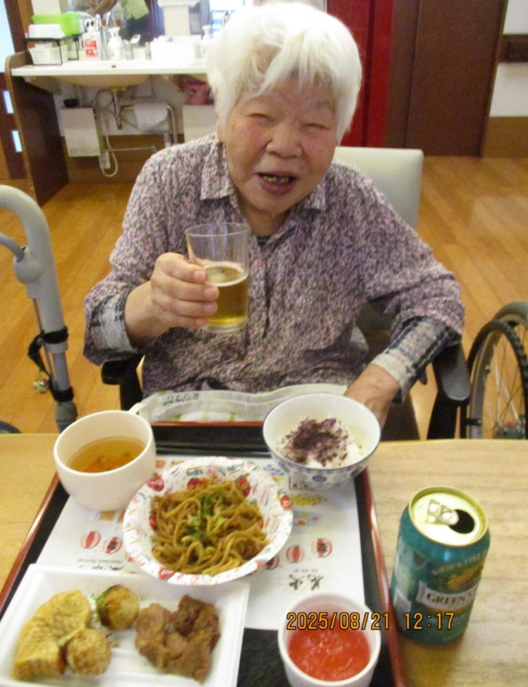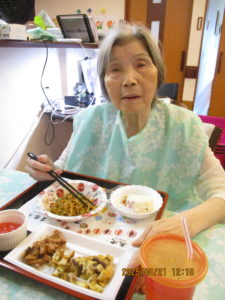 今日はご利用者様に少しでも夏の気分を味わっていただこうと思い、夏祭り風メニューを提供させていただきました。