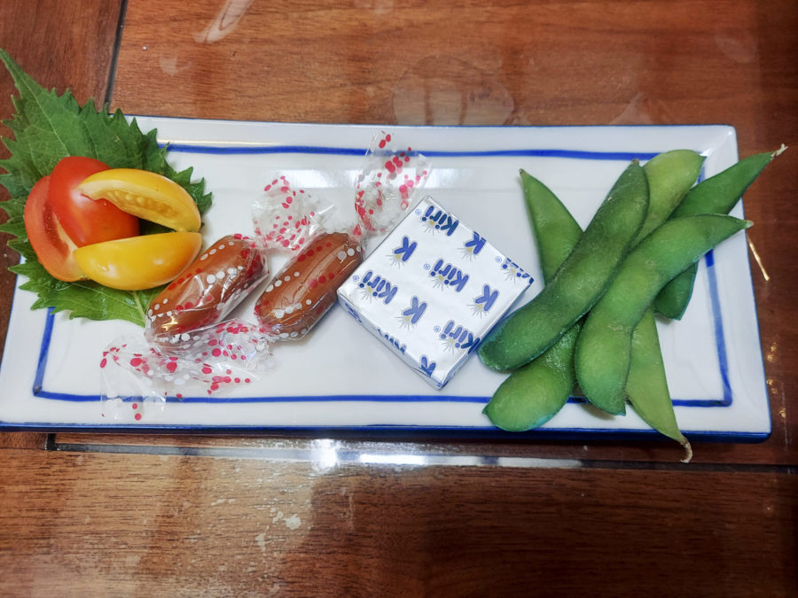 おつまみは、チーズ2種と枝豆