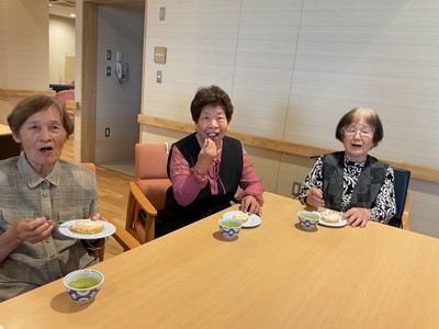 みなさん、いつもとは違ったおやつに「おいしか~」「こがんとは食べたことなか」と笑顔で