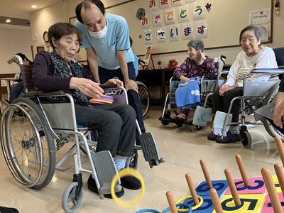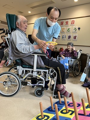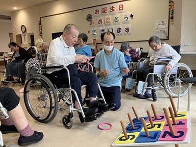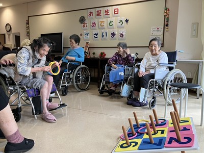皆様でお祝いをしレクリエーションとして輪投げを行いました。