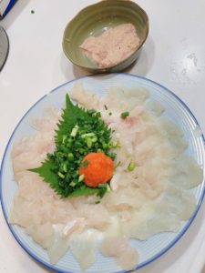 カワハギは造りに、肝はたたいてポン酢を入れてタレとしていただきます♡