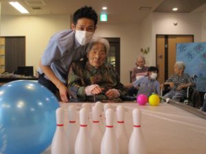 自然とご入居者様や職員からも「せーの」「頑張って」と言葉が飛び交い、