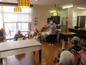 自然とご入居者様や職員からも「せーの」「頑張って」と言葉が飛び交い、