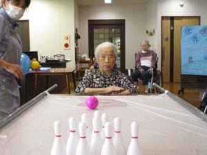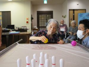 ボーリング大会後は、各ユニットで準備した敬老のお祝い品をお渡ししました。