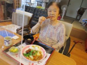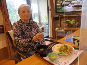 話され、益城町の夏祭りを思い出され懐かしまれている様子が見られて、作った職員も嬉しいです。