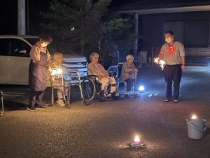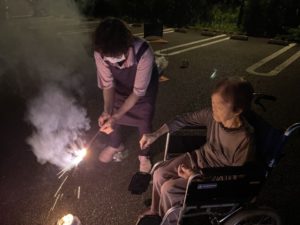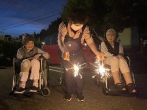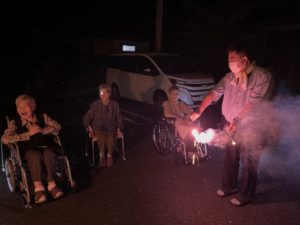 皆様、花火にうっとりされ「久々に見たよ、綺麗かね。」と言われながら、職員も一緒に楽しみました。