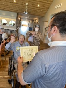 長寿祝いの表彰式のあとは施設職員によるお茶会です🍵