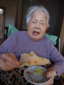 ご利用者の方の嚥下状態に合わせて、焼き芋をペースト状にし提供したり、工夫しながら