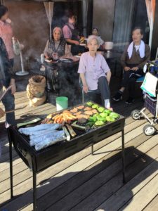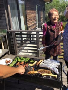 焼き始めると皆さん、美味しそうな匂いに笑みがこぼれ足取りも軽やかです。