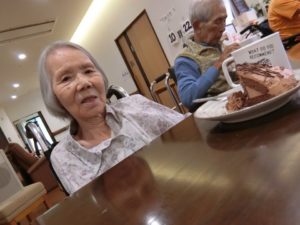後半の茶話会ではケーキを食べながらみんなでお祝いしました。