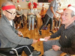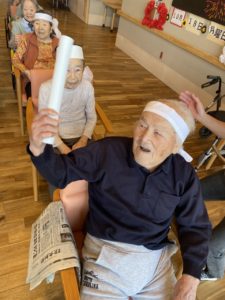 職員によるうまい棒競争は北ユニット、南ユニット共に赤組が圧勝でした🙌