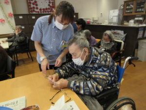そして、最後にスタッフ皆で作ったプレゼントを配り喜んで頂きました。