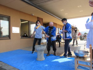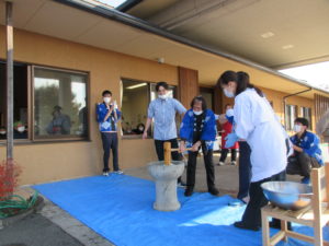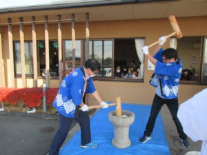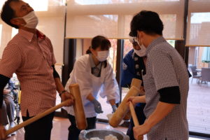利用者様に少しでも季節感を味わっていただきたく、餅つきを行いました。