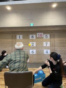 今日は午後からのリハスポの時間にストラックアウト風のゲームを行いました!