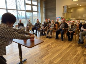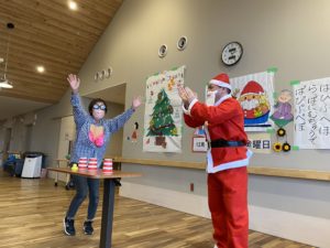 サンタさんと北国の春の音楽に合わせて体操🙋♂️