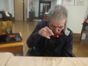 皆様、お雑煮とお節を召し上がられ、満面の笑みを浮かべておられました。