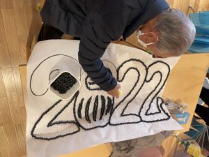 新年に向けて花紙で壁飾りを作成しました✨