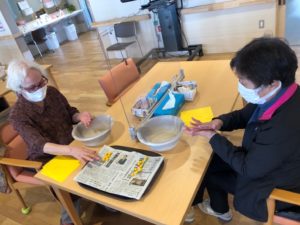 まずは、水に濡らした花紙を手際よく丸めていきます☝