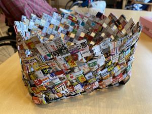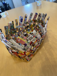 毎日ケアポート益城に新聞紙と届く広告用紙を使い、カゴを作りました💪✨