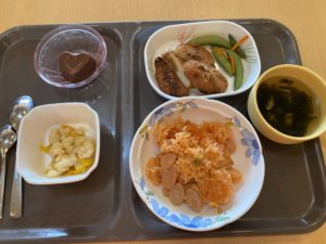 本日はお昼にバレンタインらしい洋食の提供がありました!