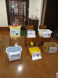 高得点を狙い、カゴにボールを投げ入れます🥎