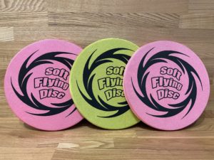 軽く安全なフリスビーを利用者様に投げて頂きます。