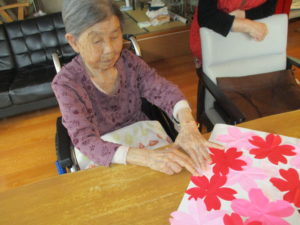 「きれいかな」「よう出来とる」「こっばみて花見してよかかんしれんな♪」など、スタッフやご利用者様同士でも
