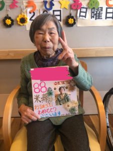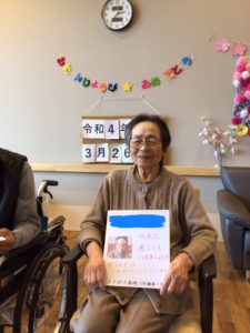 職員お手製色紙のプレゼントに、「わーよくできとる」「こがんともらってよかと?」と素敵な笑顔をみせてくださいました☺️♥
