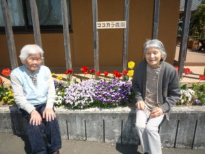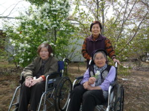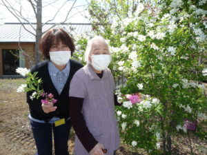 4月に入って暖かい日が続いてるので、職員と一緒に施設のお花を見にお散歩へ出掛けました。