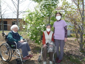 4月に入って暖かい日が続いてるので、職員と一緒に施設のお花を見にお散歩へ出掛けました。