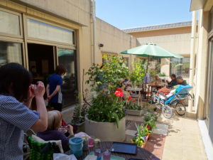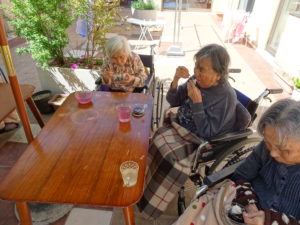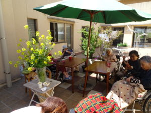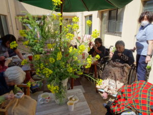 もみじ・ぼたんユニットの中庭でお花見をしました🌷