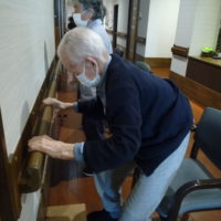 起立訓練ではしっかりお辞儀をしながら立ちあがり、ゆっくり座ります。
