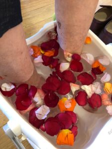 入浴されない利用者様には足湯の中にバラ🌹を浮かべ入って頂きましたよ💖
