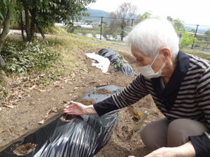 サツマイモも地面を耕し、苗を買ってきて利用者さんと一緒に植える事が出来ました。