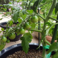 ミニトマトは順調に大きくなって、まだ緑色ですがたわわに実ってきました!!