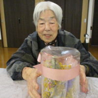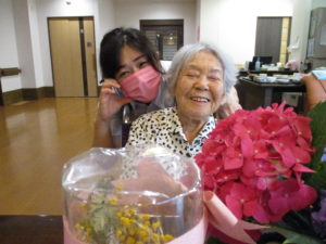 「この花も綺麗でしょ?」と娘様からのプレゼントを嬉しそうに職員に見せて下さります(^^♪