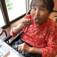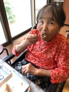 口いっぱいにケーキを頬張られ「おいしいよ。」と満面の笑み ‼
