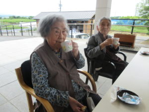 また、別の日にはデイサービス玄関前にて