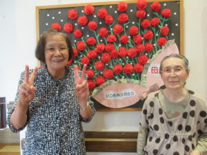 手作りカーネーションの花束の前で記念撮影♡
