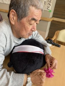 今回男性入居者様も「俺もするよ〜」と細かい作業に苦戦されながらも上手に作ってくれました!!