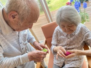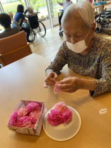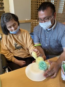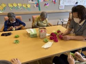 今回男性入居者様も「俺もするよ〜」と細かい作業に苦戦されながらも上手に作ってくれました!!