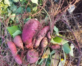 秋にはサツマイモを収穫。天ぷらとスイートポテトに。